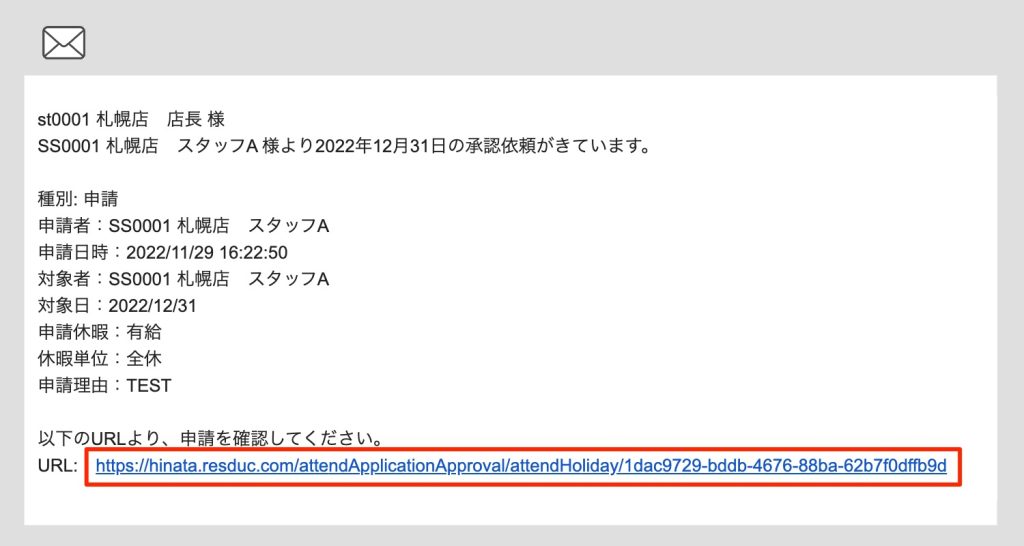 承認依頼メールの本文の末尾に記載されている承認画面へのリンクをクリックします。