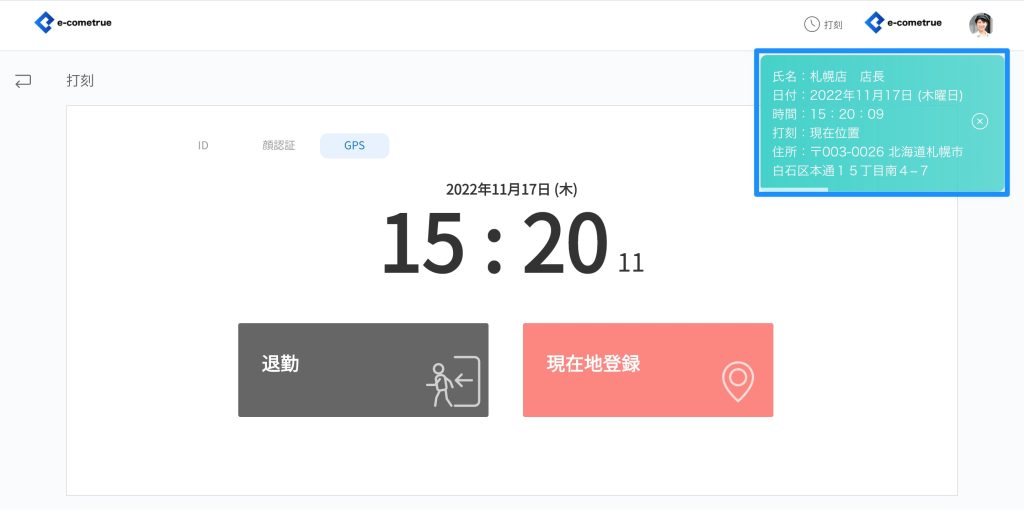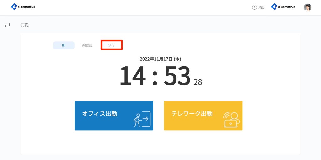 打刻でGPS打刻を開く