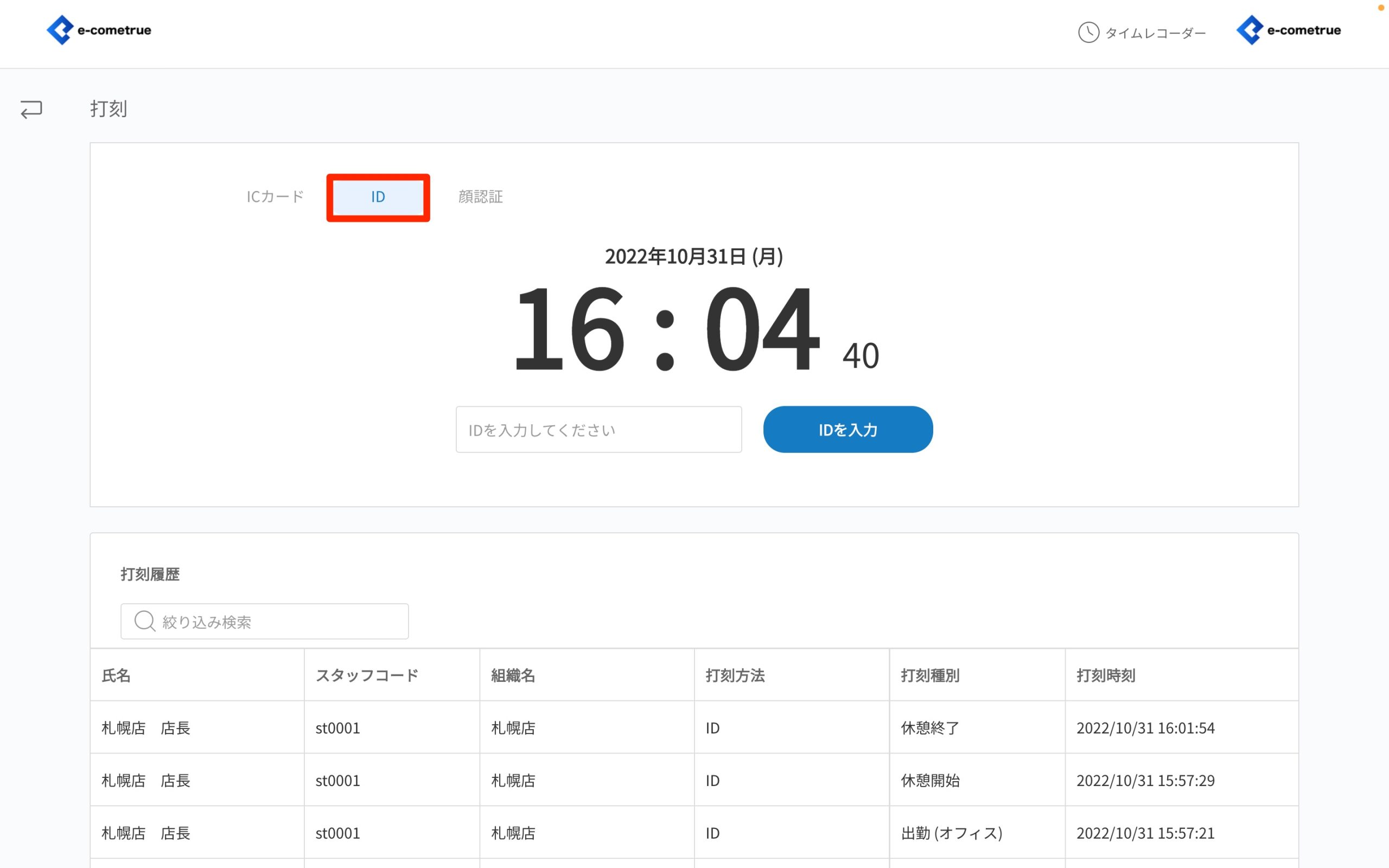 タイムレコーダーでID打刻を開く