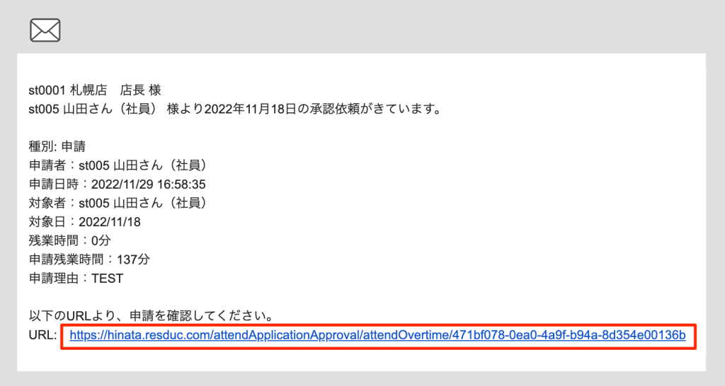 承認依頼メールの本文の末尾に記載されている承認画面へのリンクをクリックします。