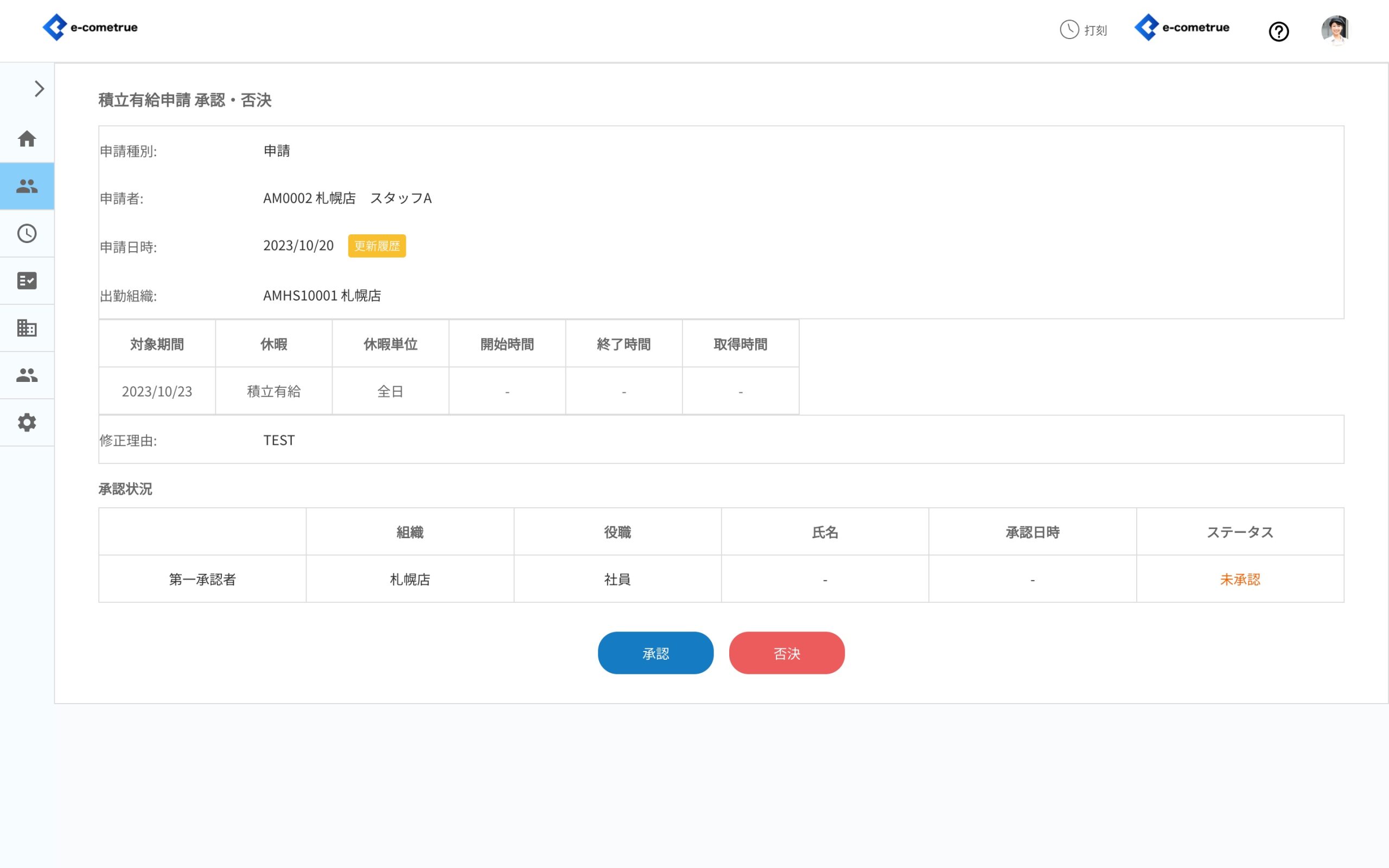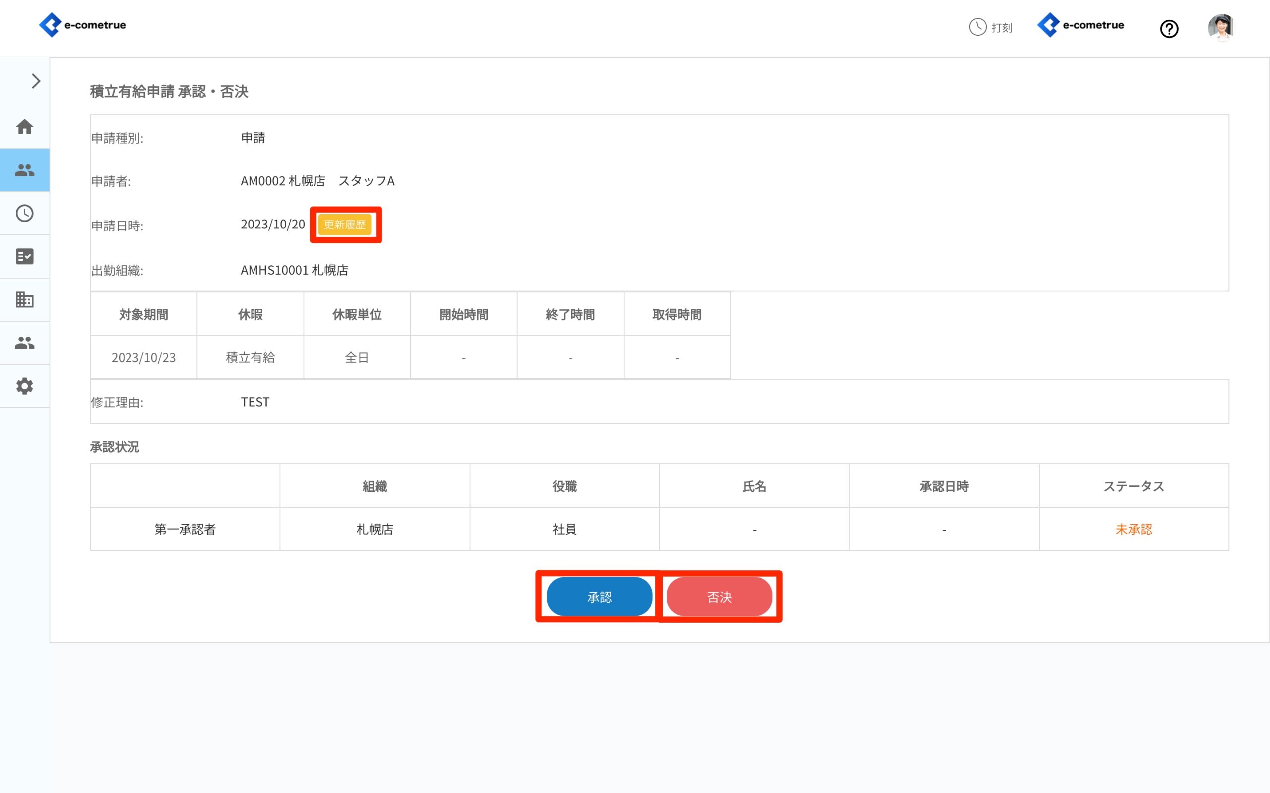 - 承認または否決をクリックする