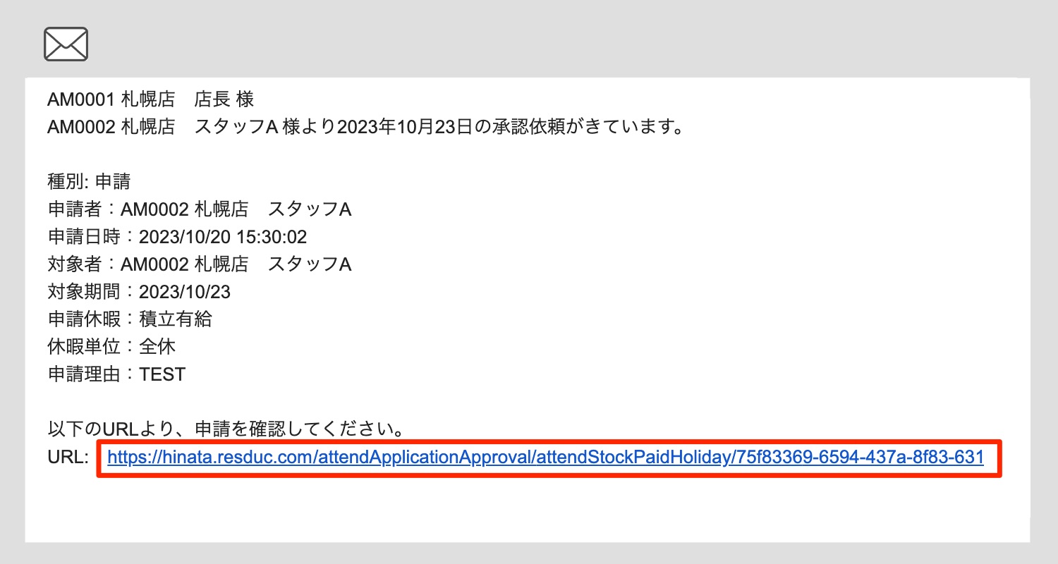 承認依頼メールの本文の末尾に記載されている承認画面へのリンクをクリックします。