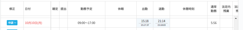 [ 新機能 ] 出勤・退勤の実時間の表示機能のリリース(2022/11/17) Created 2022年11月18日 Author admin Category リリース情報 2022年11月17日 【 新機能 】 [ 打刻データ確認 ] 出勤・退勤の実時間の表示がされるように機能を追加しました。 打刻データ確認画面にて、出勤・退勤の時刻表示欄に、打刻の履歴がある場合に打刻された時間を表示する機能を追加いたしました。これにより、実打刻時間と記録された出退勤時間との差分を確認することが容易になります。