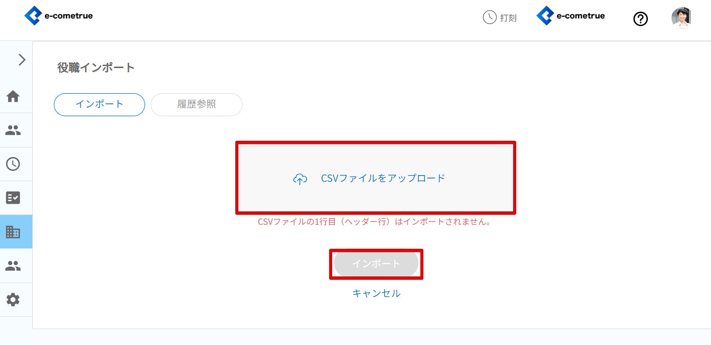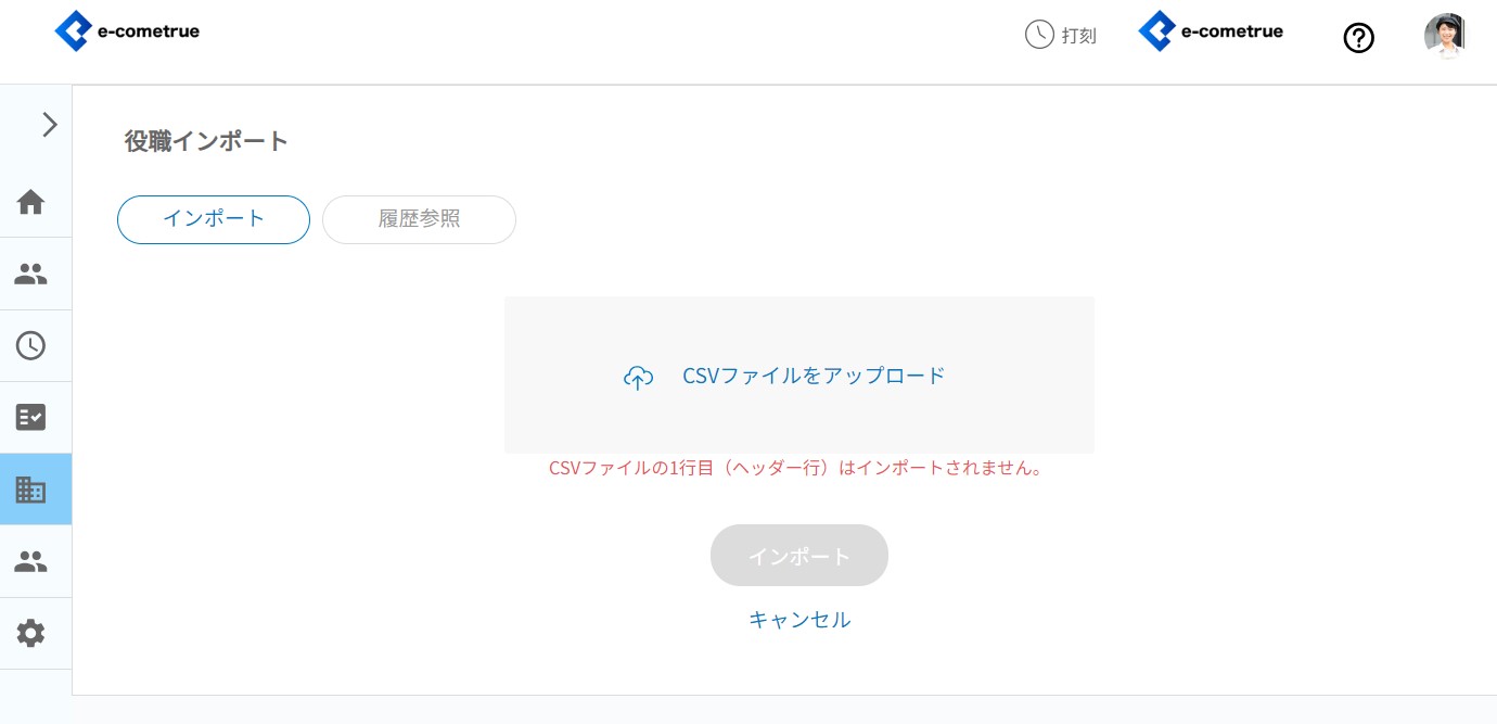 役職情報を CSV 形式にてインポートすることで一括で登録ができます。