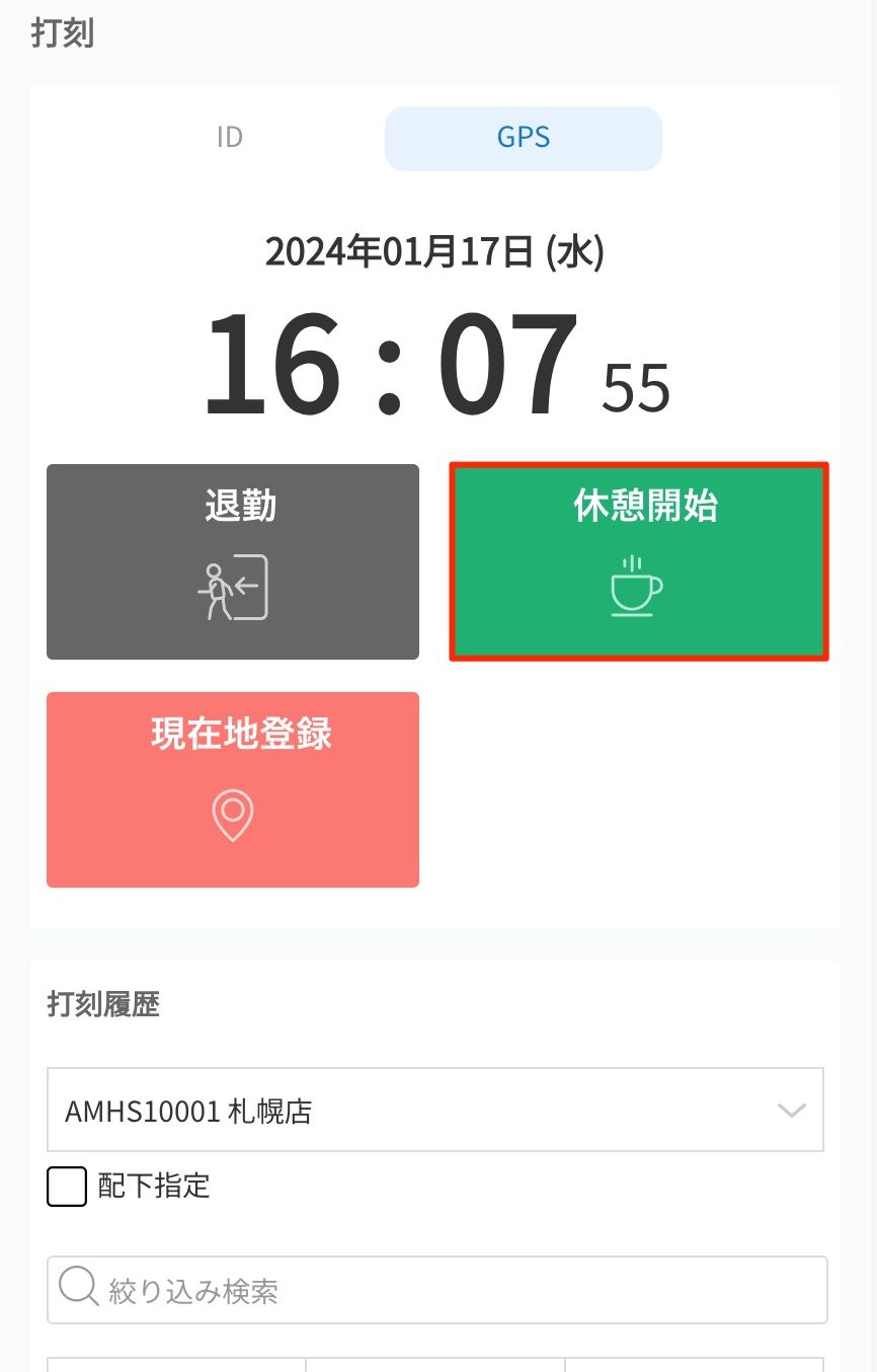休憩開始打刻をする