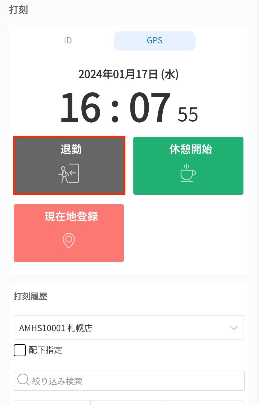 GPSで現在位置をもとに出退勤や休憩の時間を打刻することができます。