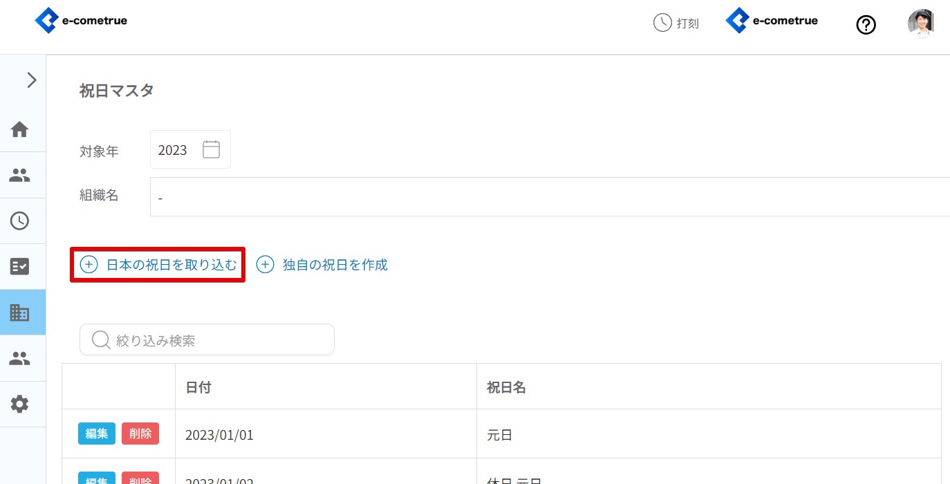 日本の祝日を全組織または組織ごとに取り込むことができます。