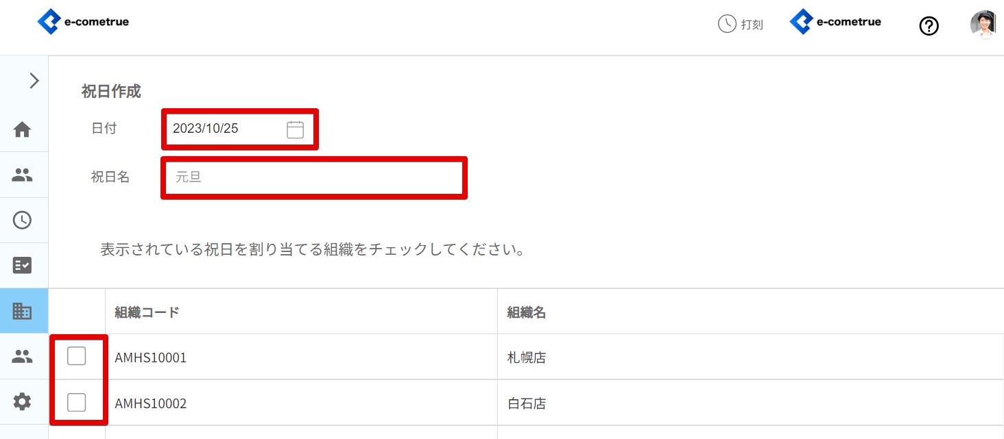 ※表示されている祝日を割り当てる組織をチェックしてください。 - 登録をクリックする