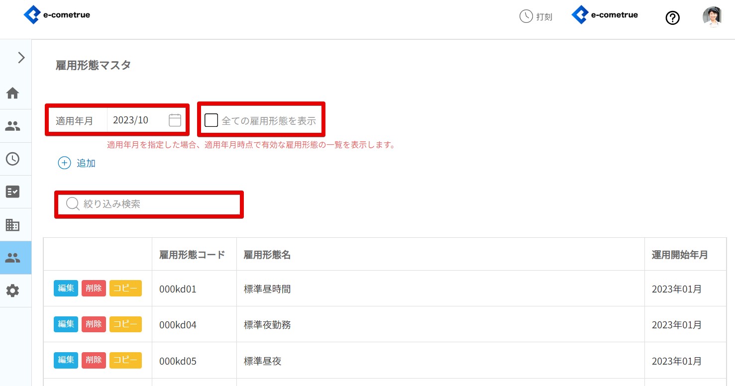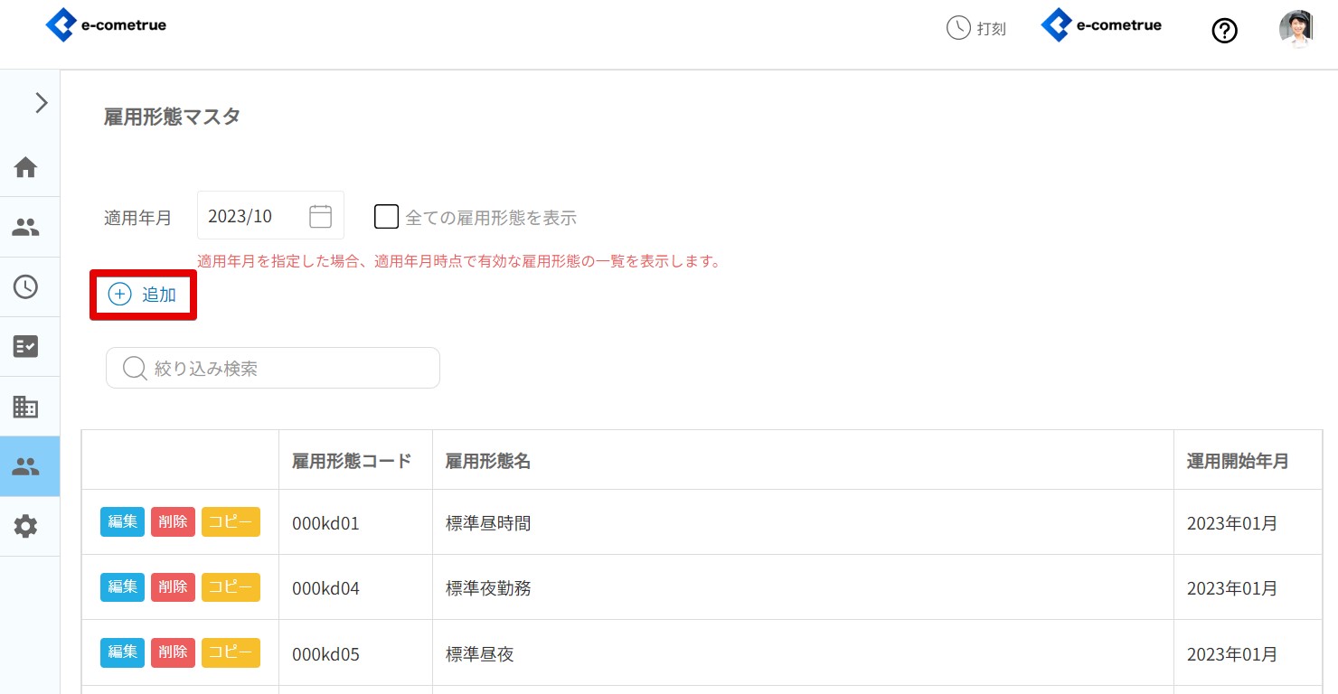 ホーム>勤怠マスタ>雇用形態