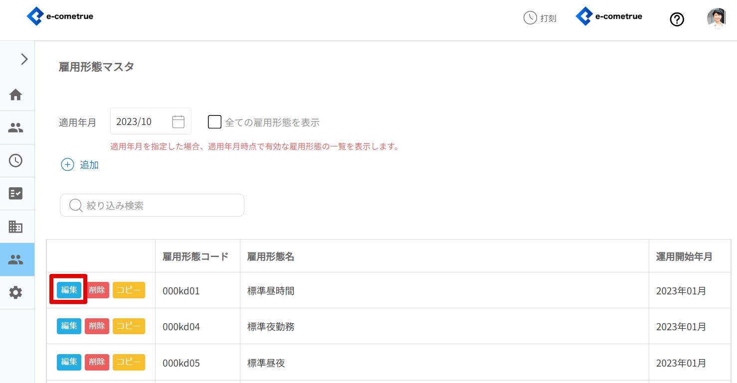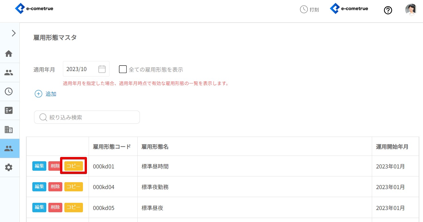 登録されている雇用形態をコピーして編集することができます。