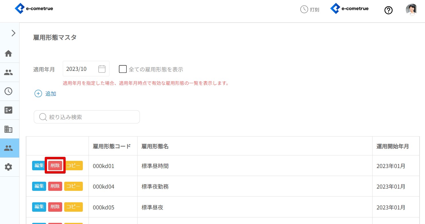 登録されている雇用形態を削除することができます。