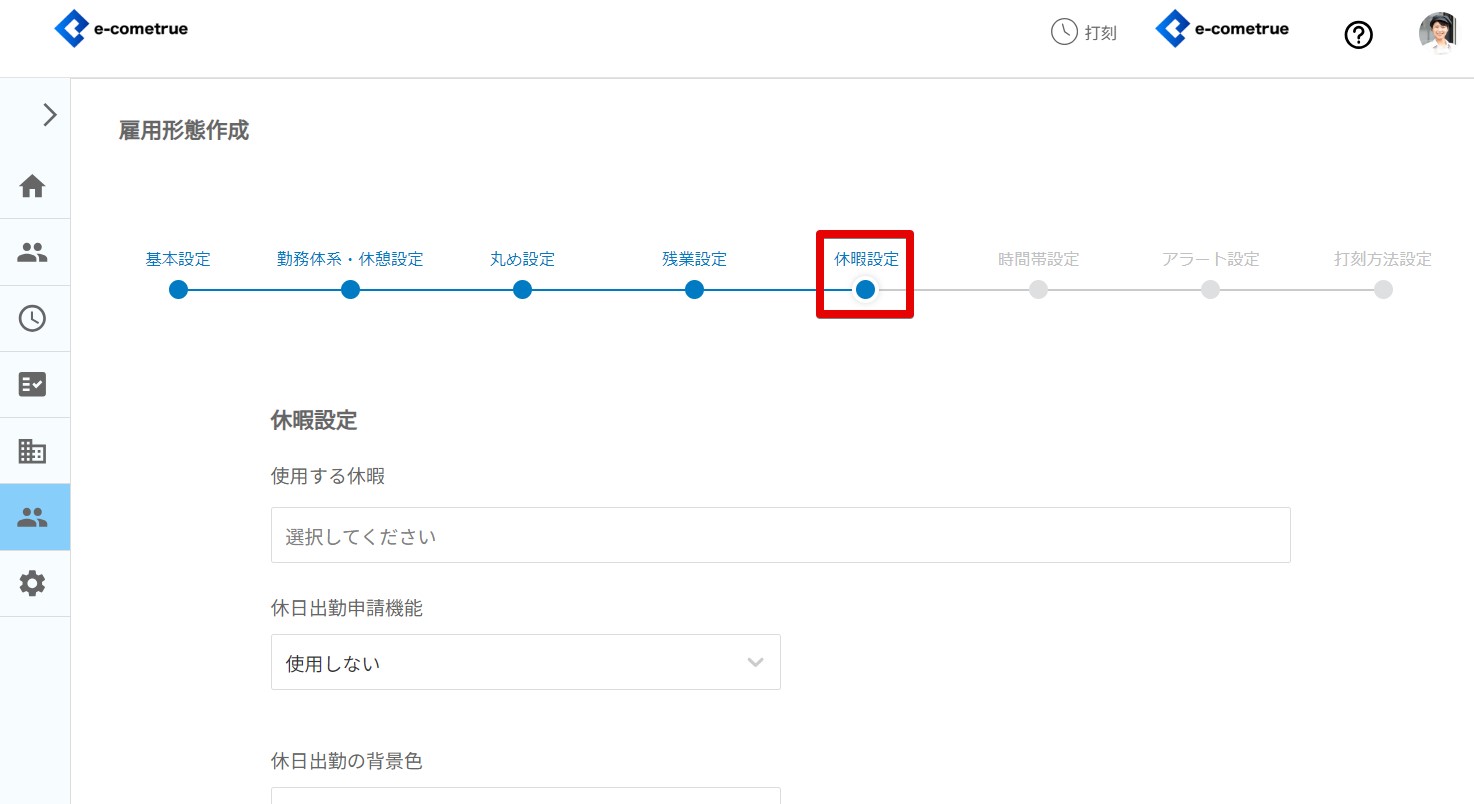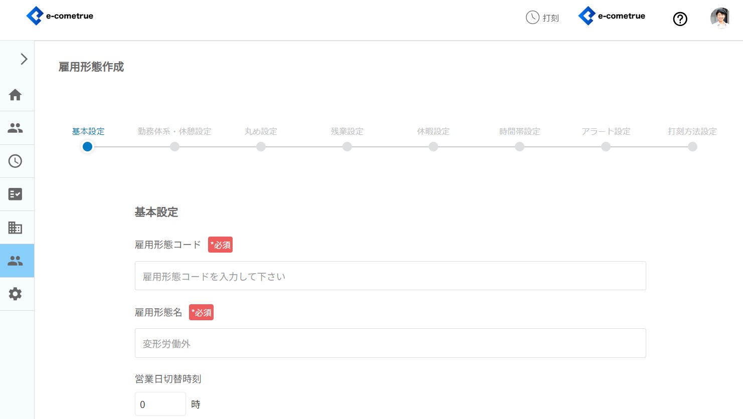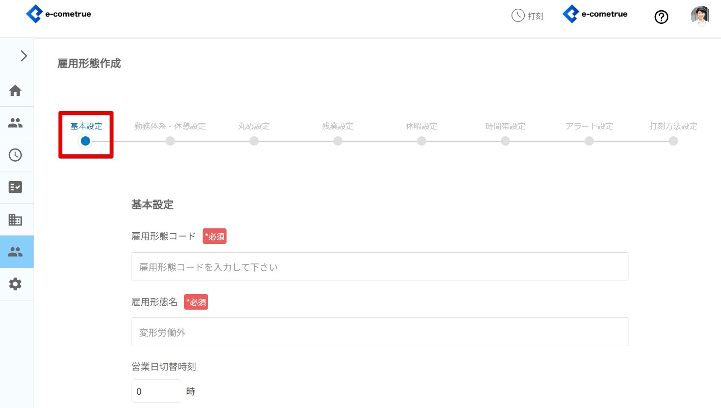 雇用形態の基本設定を登録することができます。