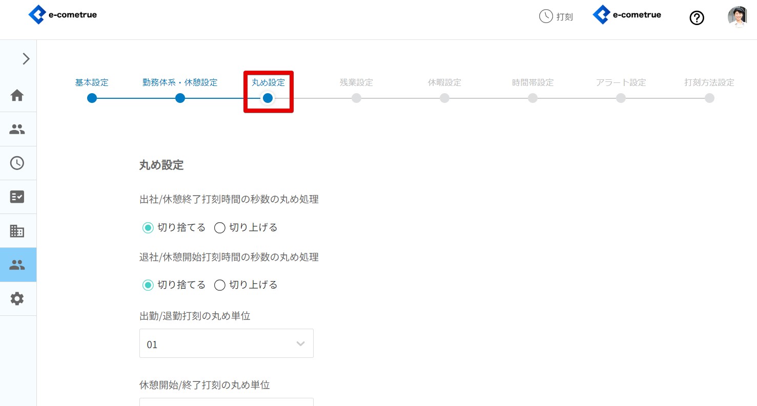 雇用形態の丸め設定を登録することができます。