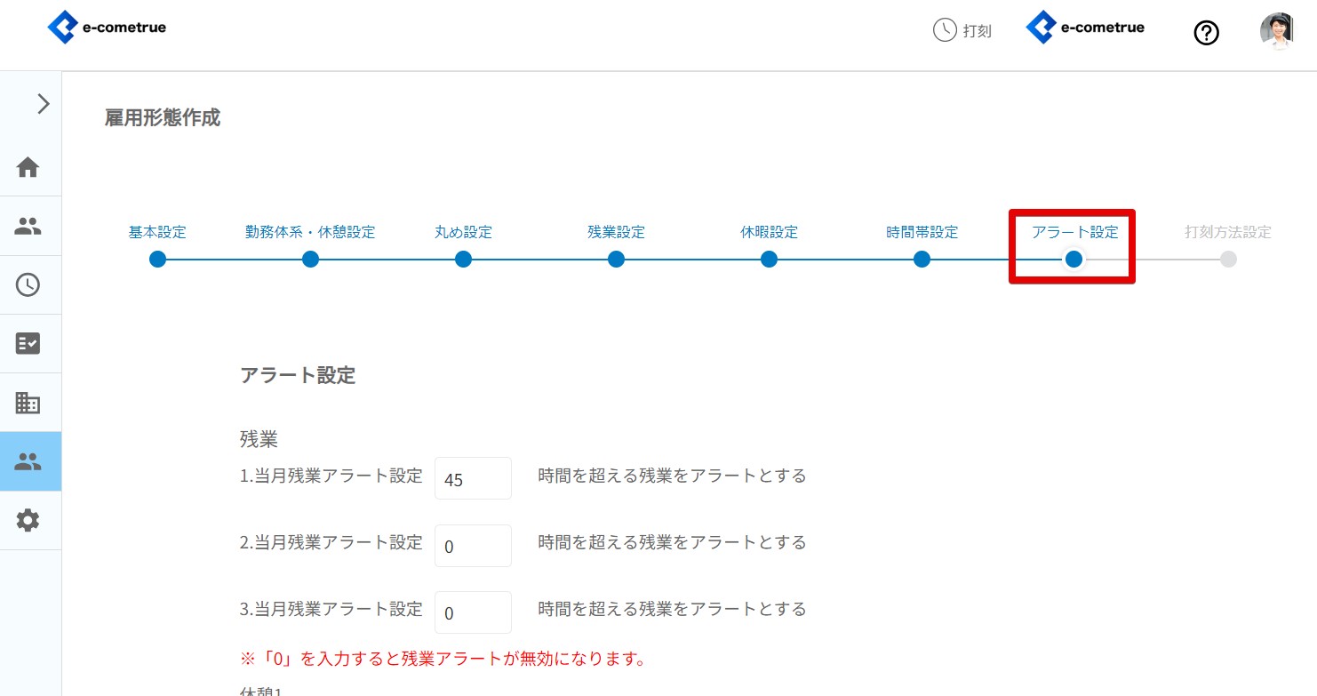 雇用形態のアラート設定を登録することができます。
