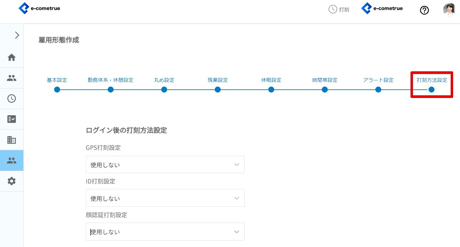雇用形態の打刻方法設定を登録することができます。