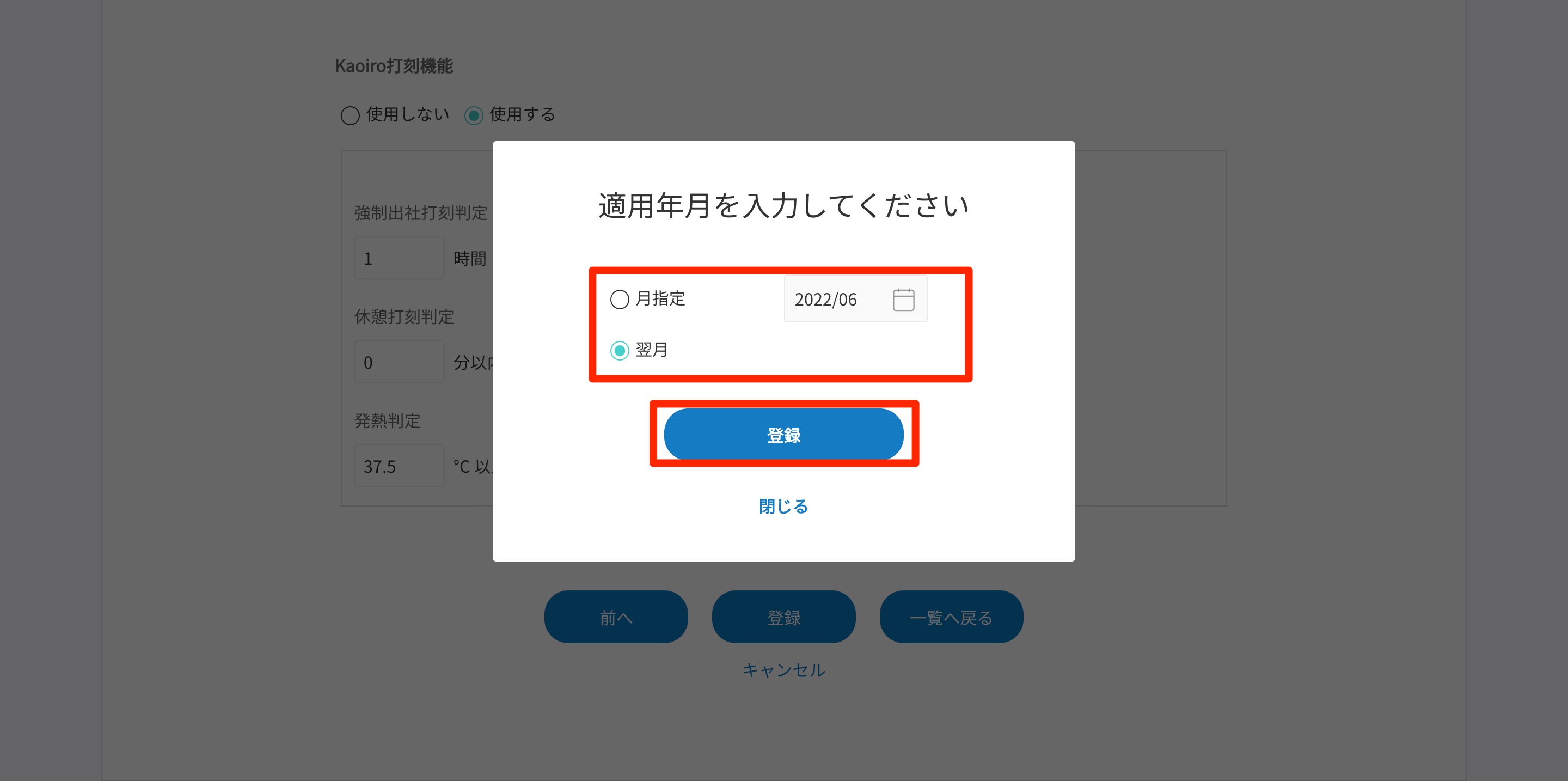 ※「適用年月を入力してください」のポップアップ表示が表示されます。 - 登録をクリックする