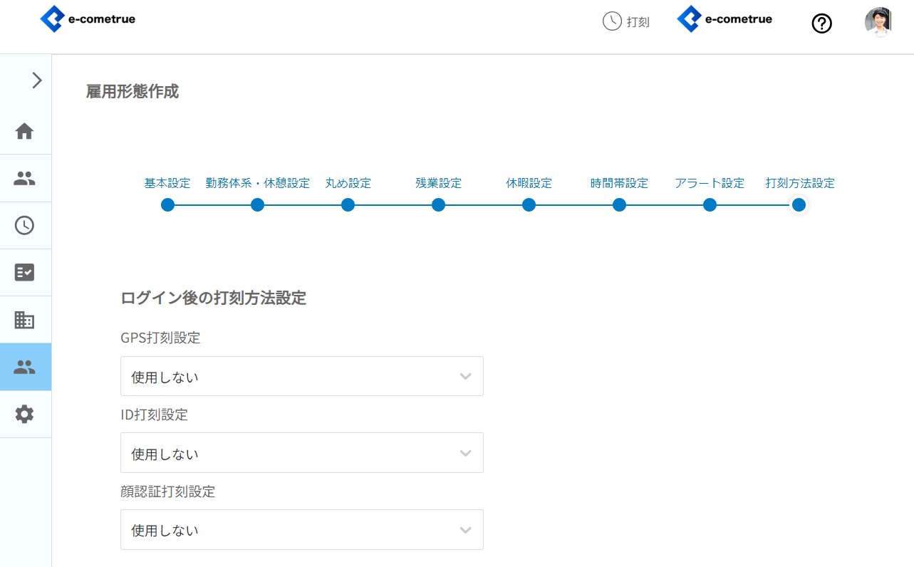 ホーム>勤怠マスタ>雇用形態>編集>打刻方法設定