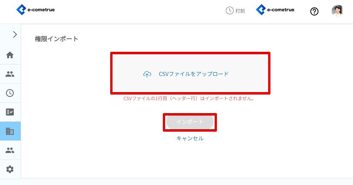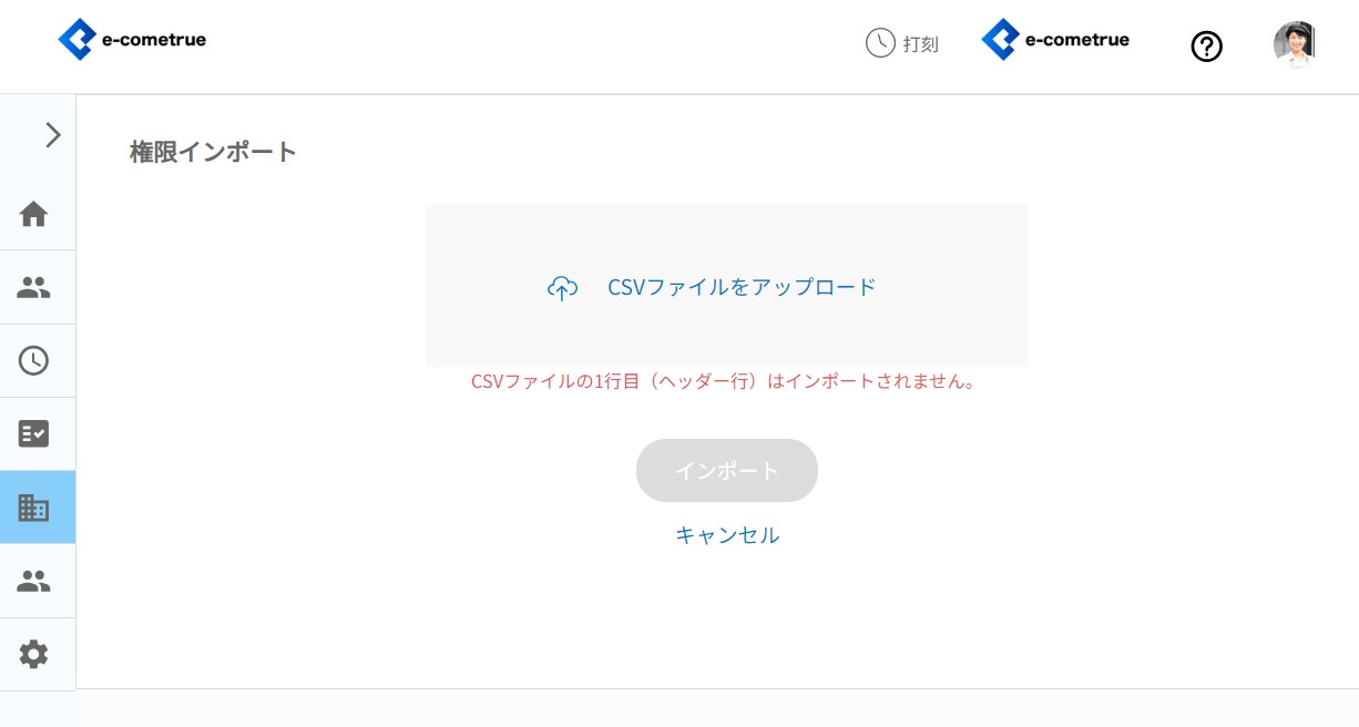 権限情報を CSV 形式にてインポートすることで一括で登録ができます。