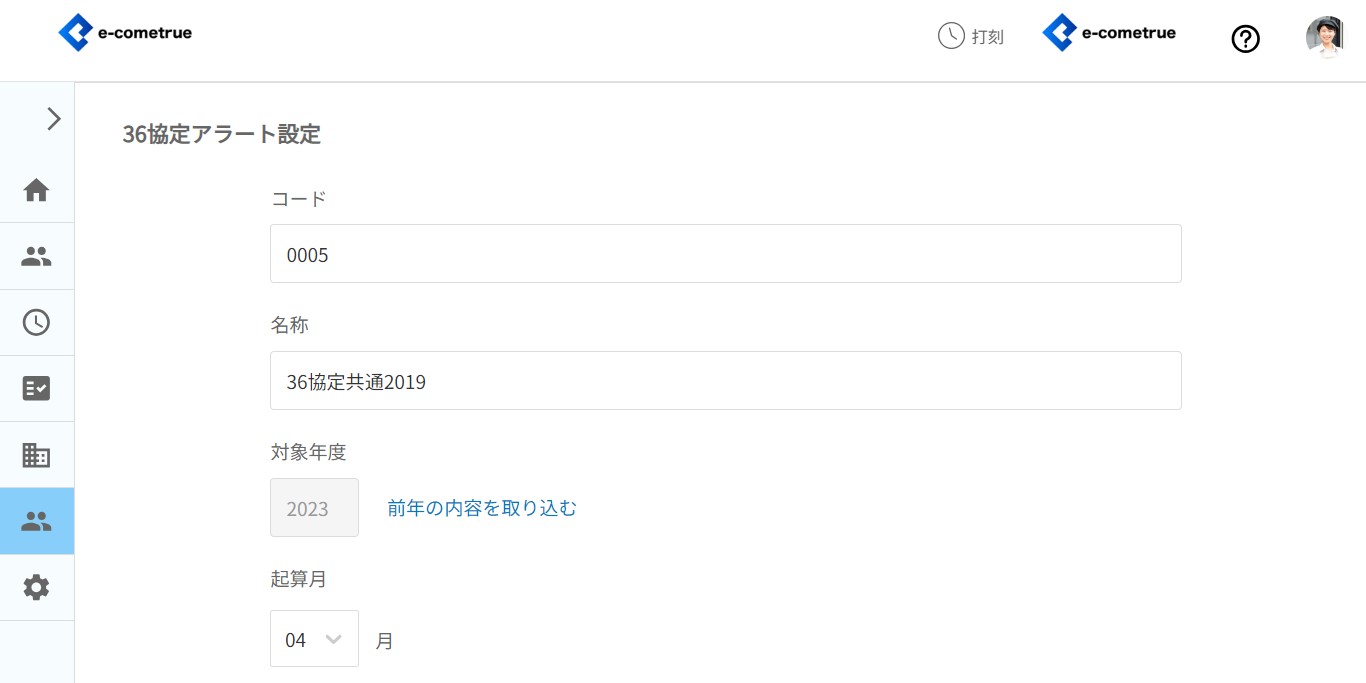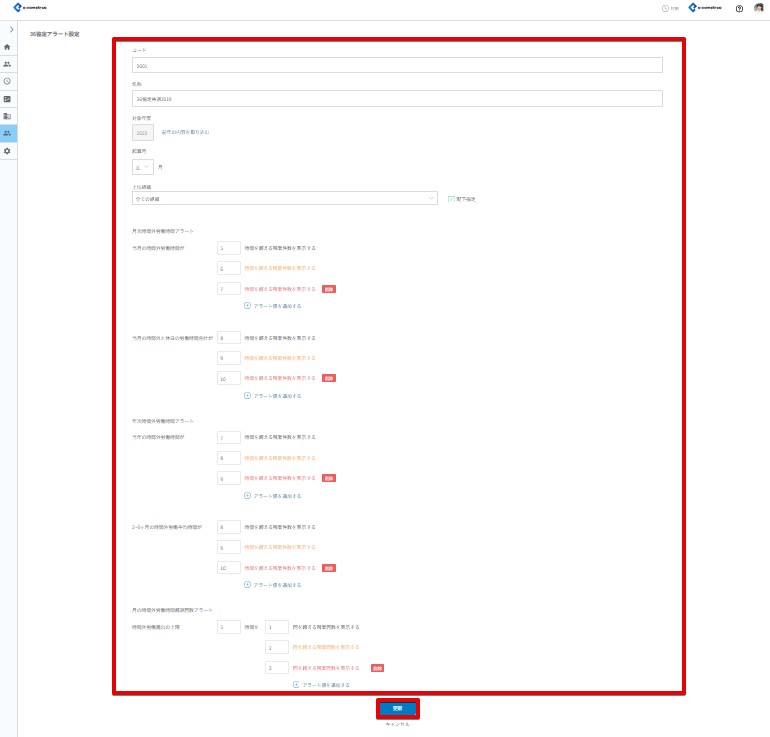 ホーム>勤怠マスタ>36協定アラート設定>編集