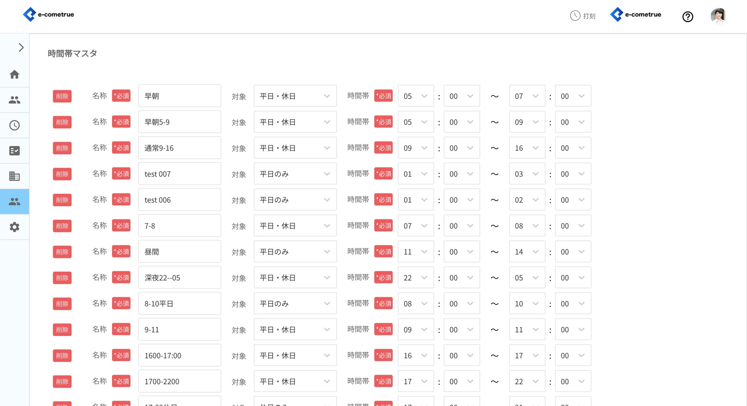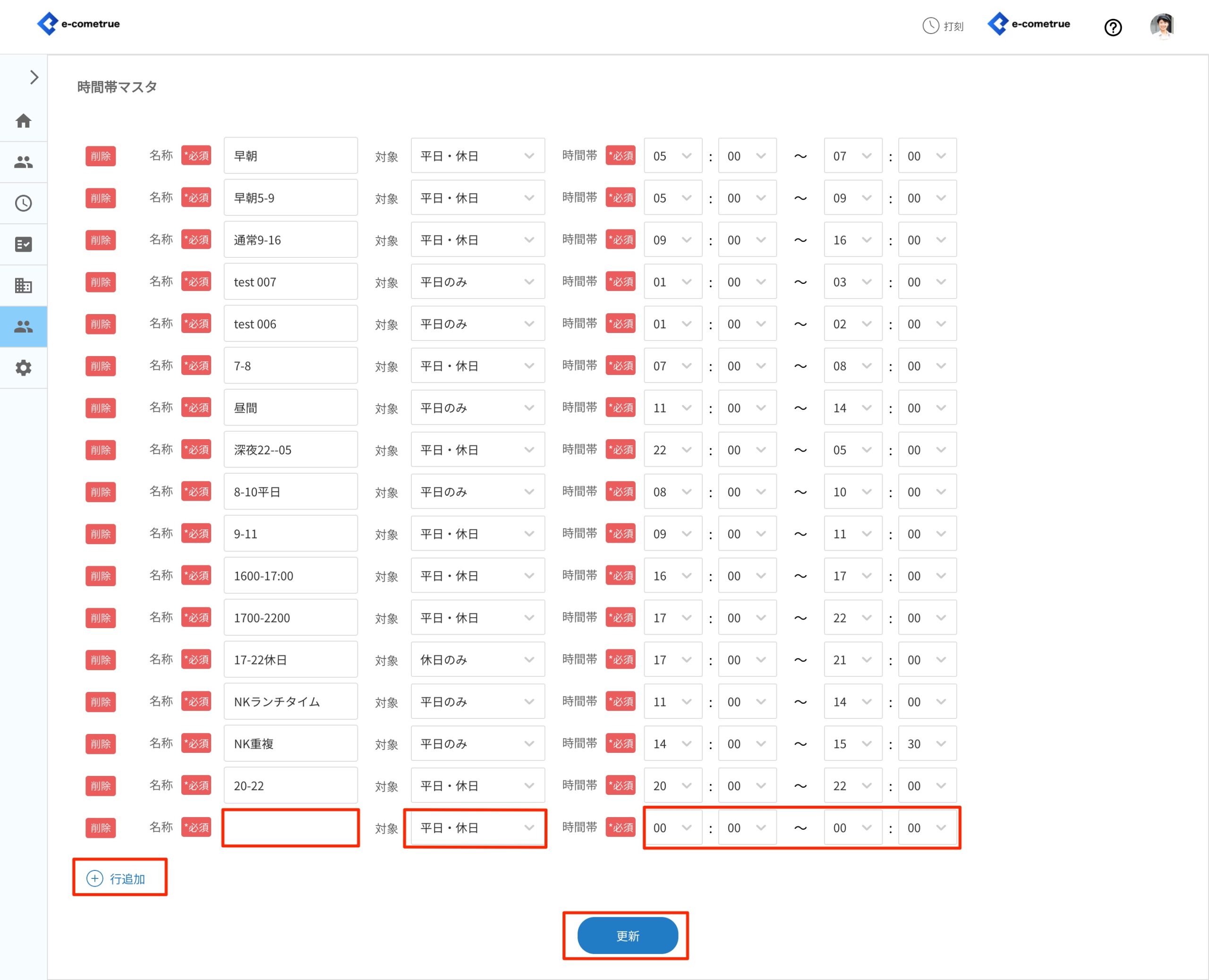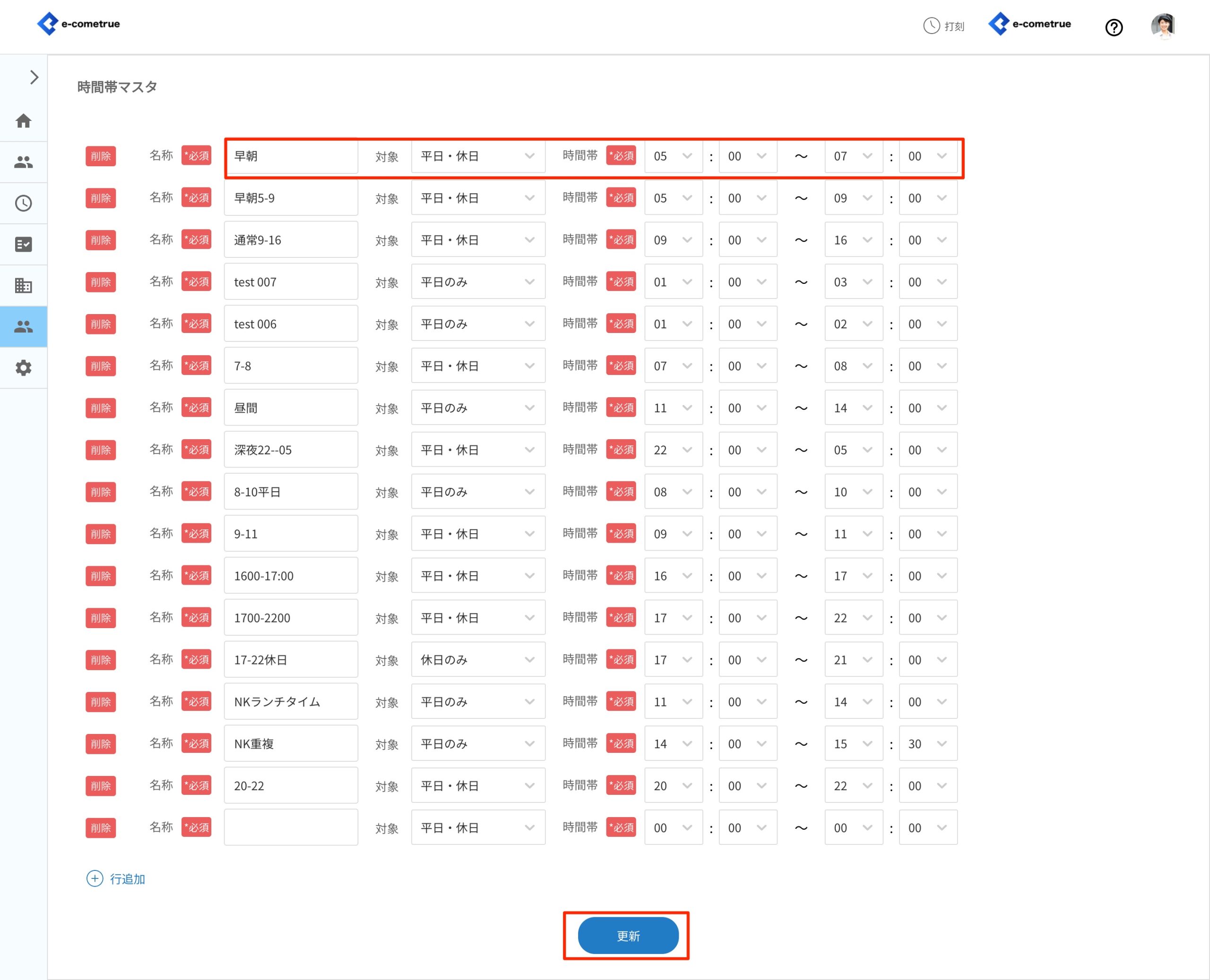 ※「時間帯マスタを登録」のポップアップ表示されるので登録するをクリックしてください。