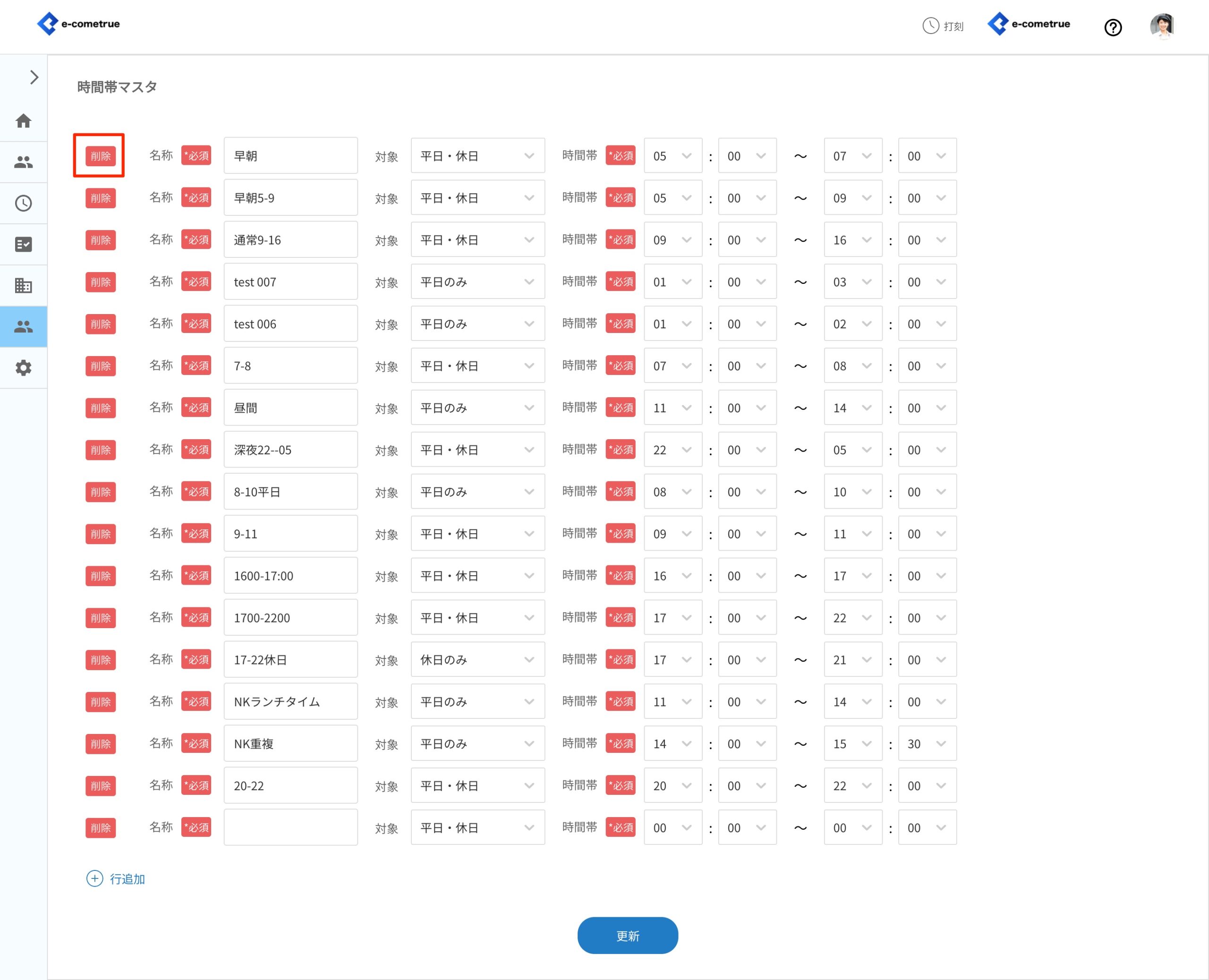 時間帯が不必要になったり、誤って登録した場合などにご利用ください。