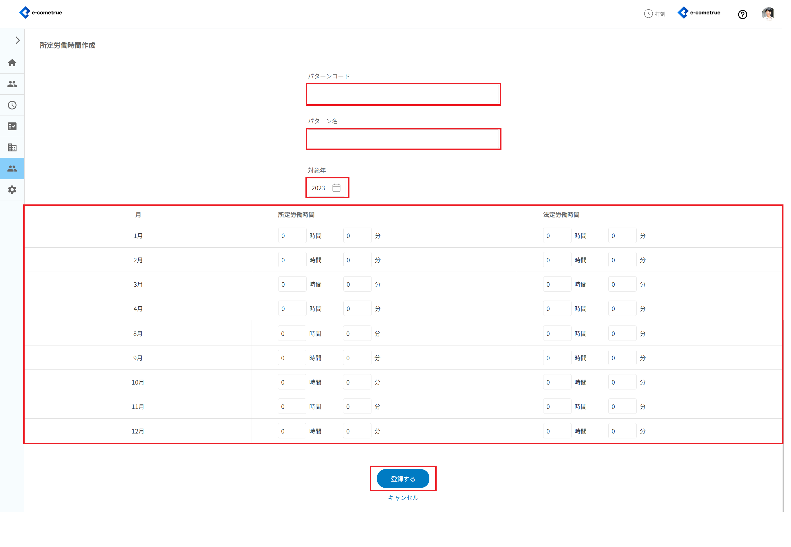 ※「所定労働時間を登録」のポップアップ表示されるので登録するをクリックしてください。登録が完了すると、所定労働時間マスタ画面へ遷移します。
