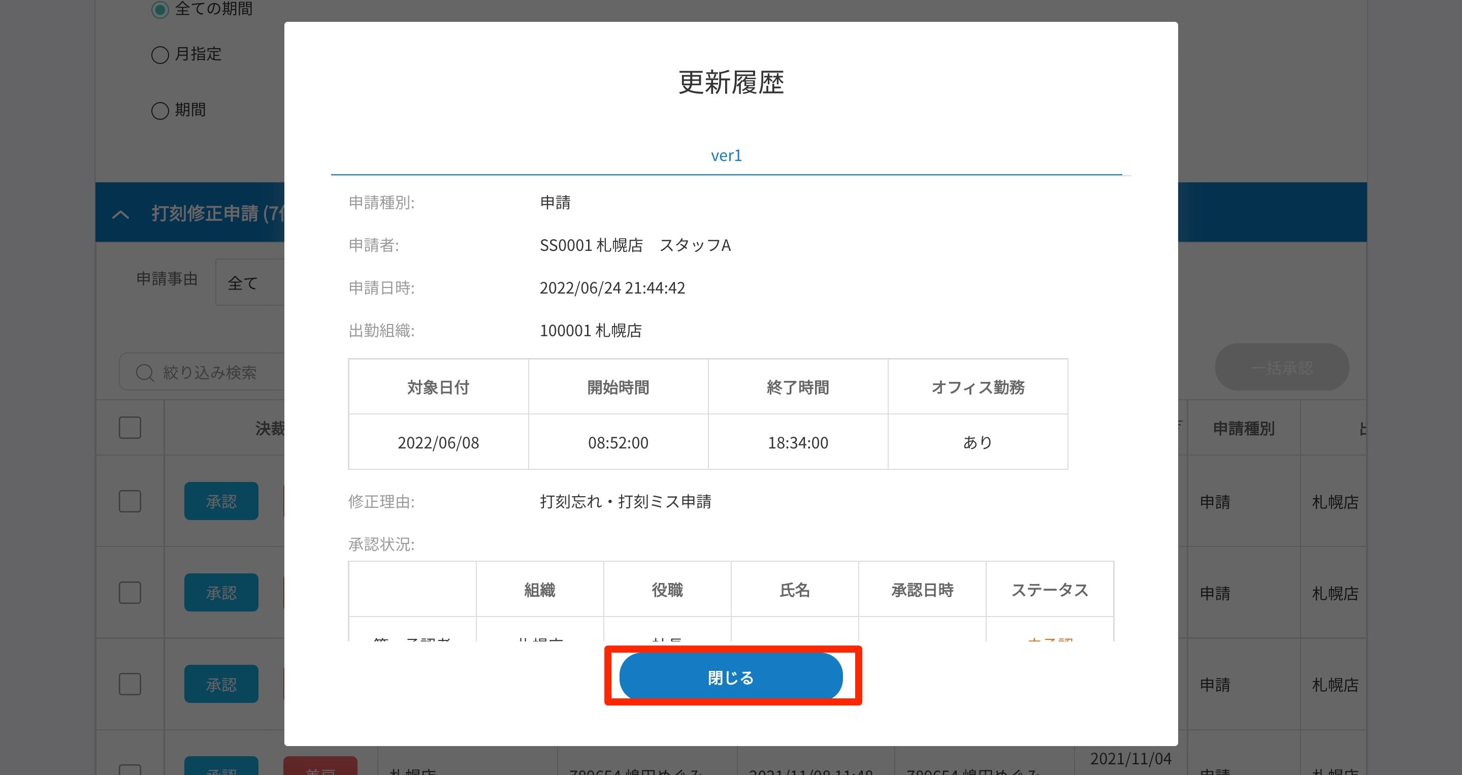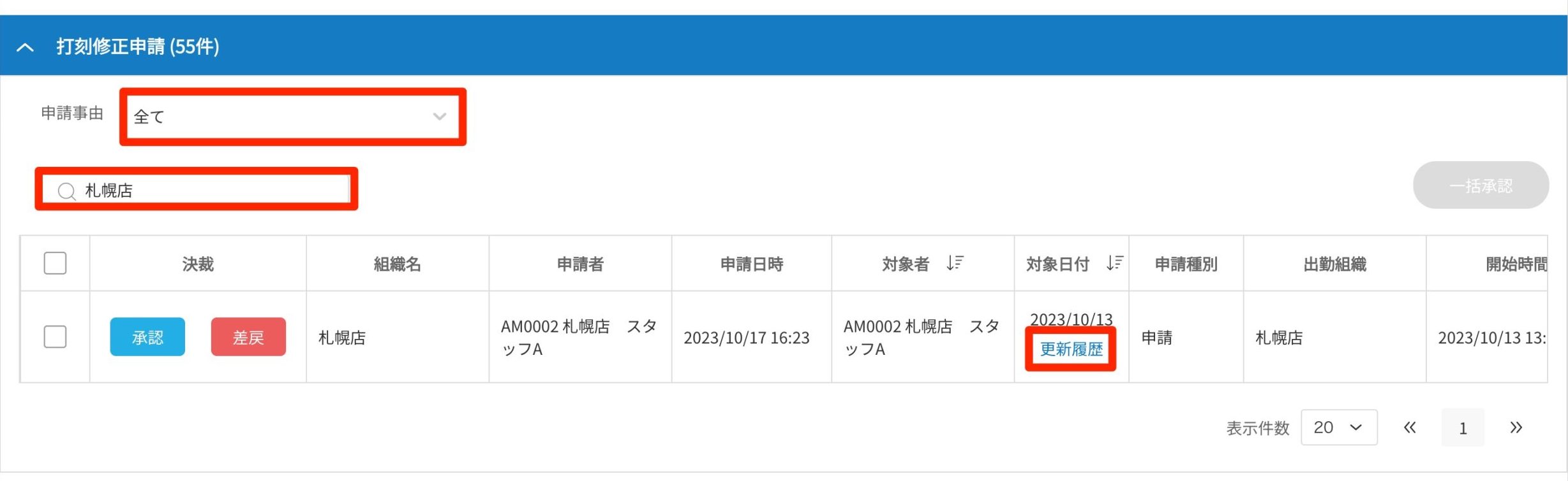※打刻修正申請のみ - 検索したい文字列を絞り込み検索に入力し絞り込みする