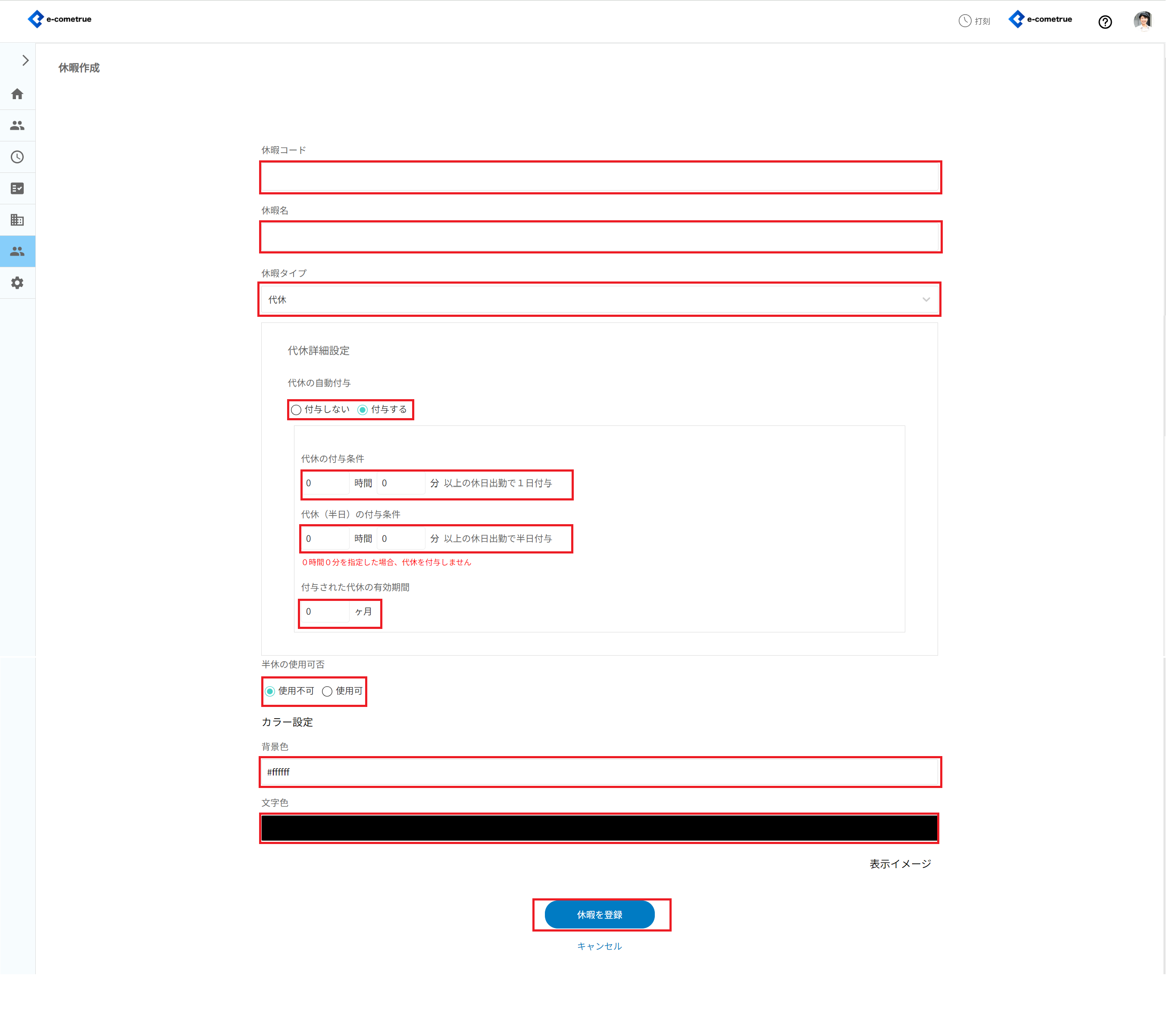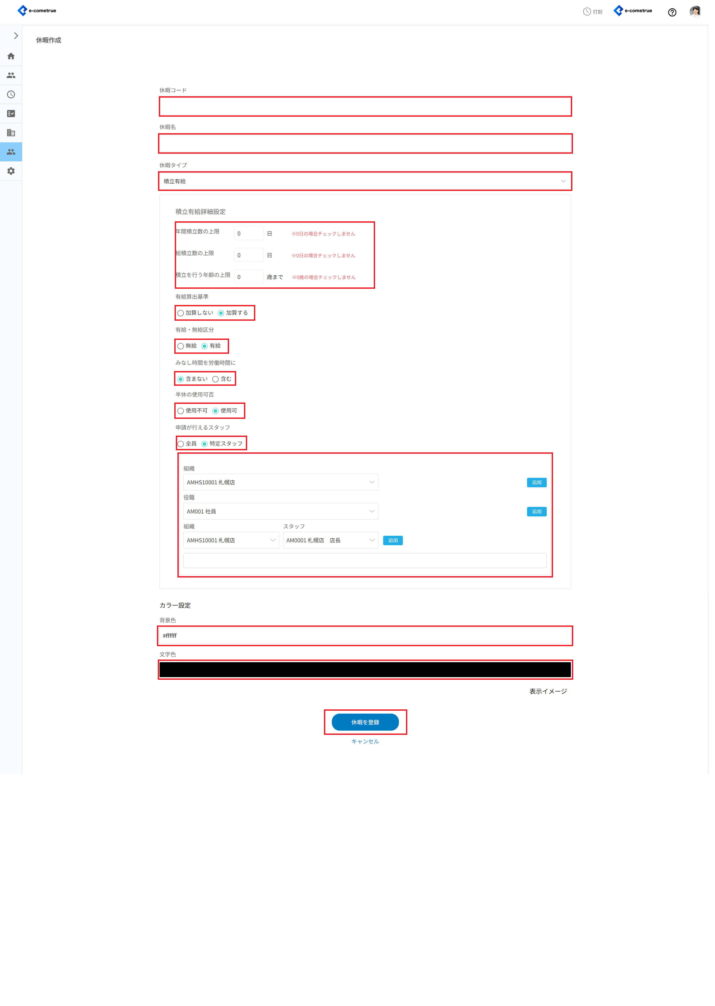 - 休暇コードを設定する