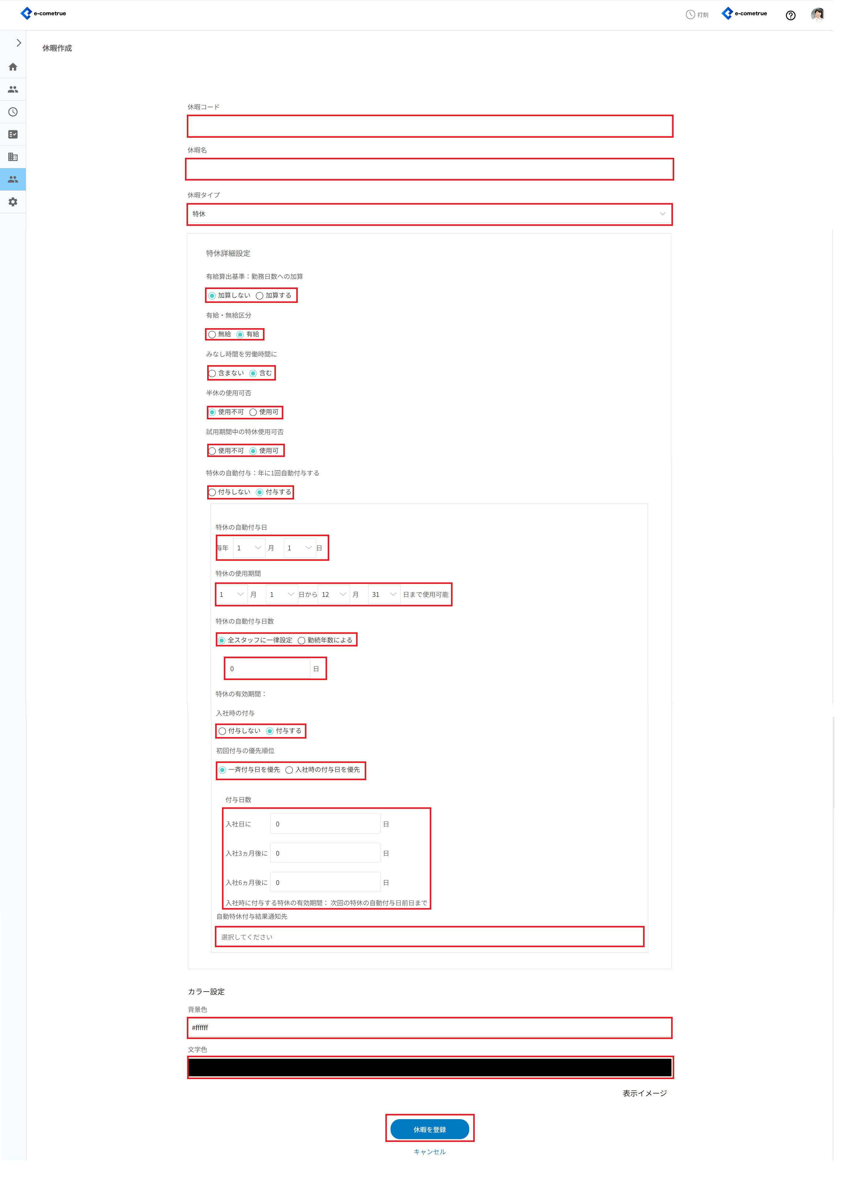 休暇を新たに登録する(特休)